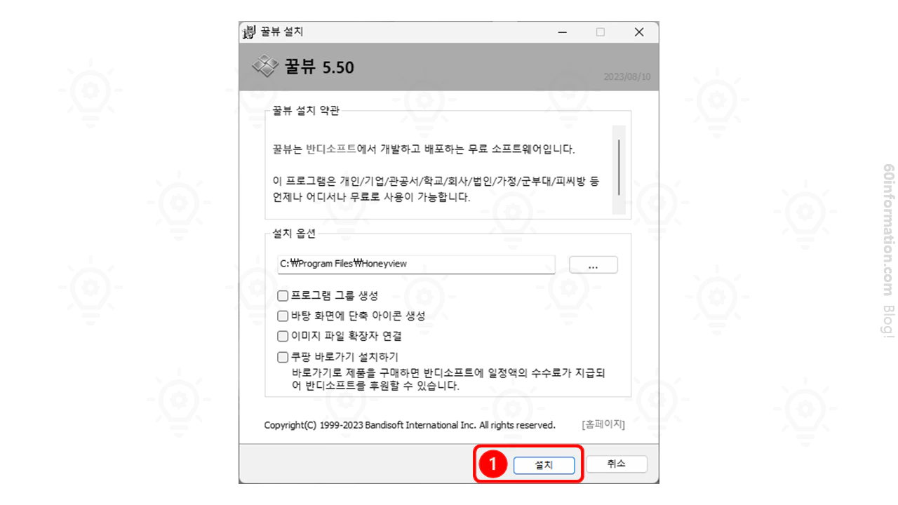 - 특의 사항은 없다. 꿀뷰 설치 화면이 뜨면 "설치"를 선택.