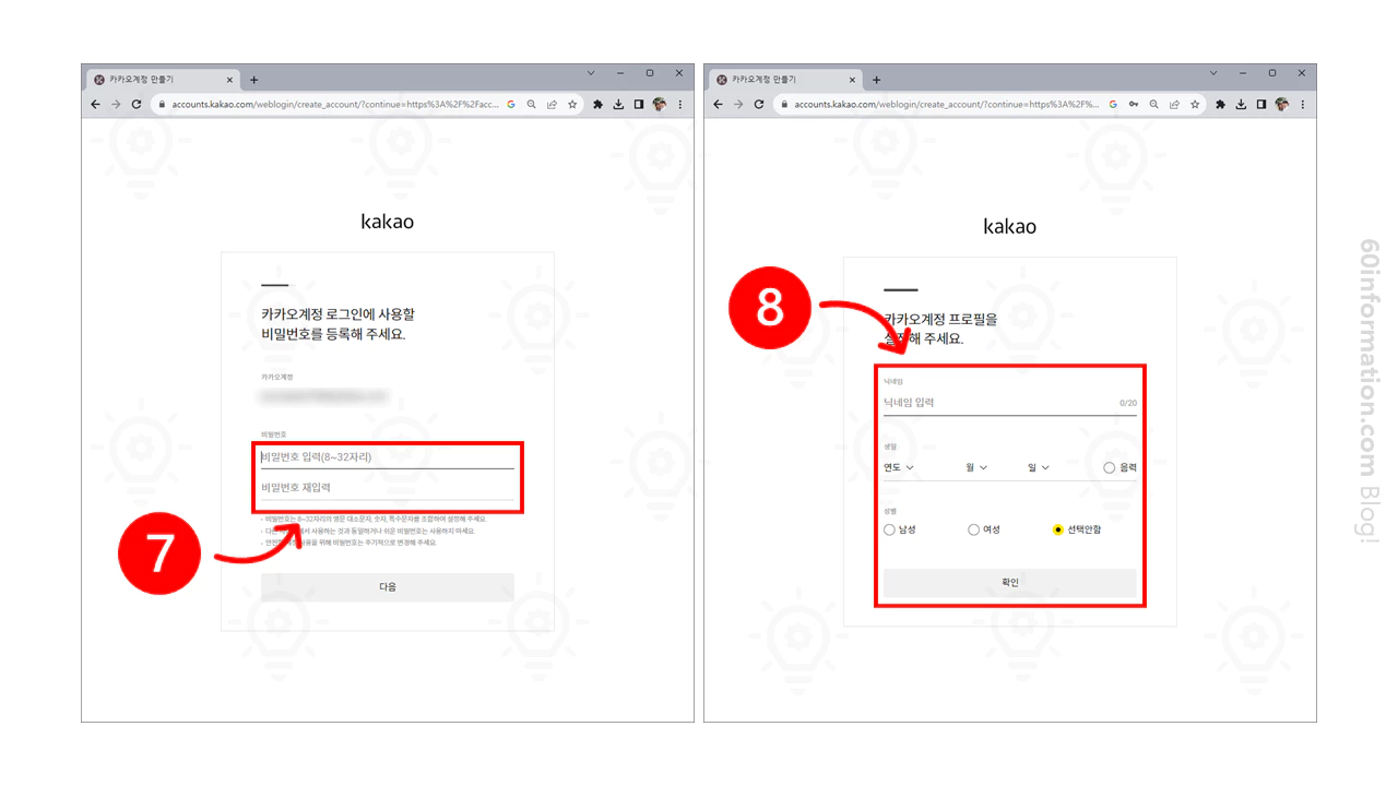 8. 프로필 작성 ➜ 닉네임, 생일, 성별 등을 입력, 확인.