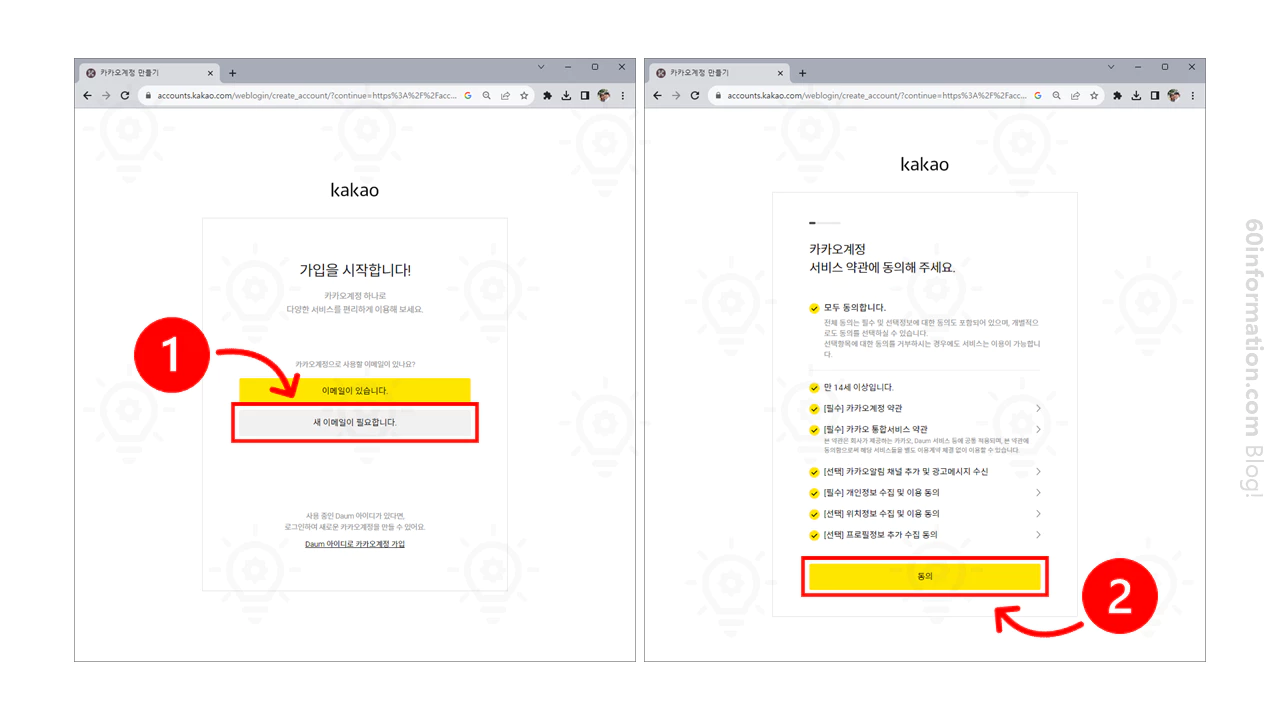 2. 카카오계정 서비스 약관에 "동의" 선택.