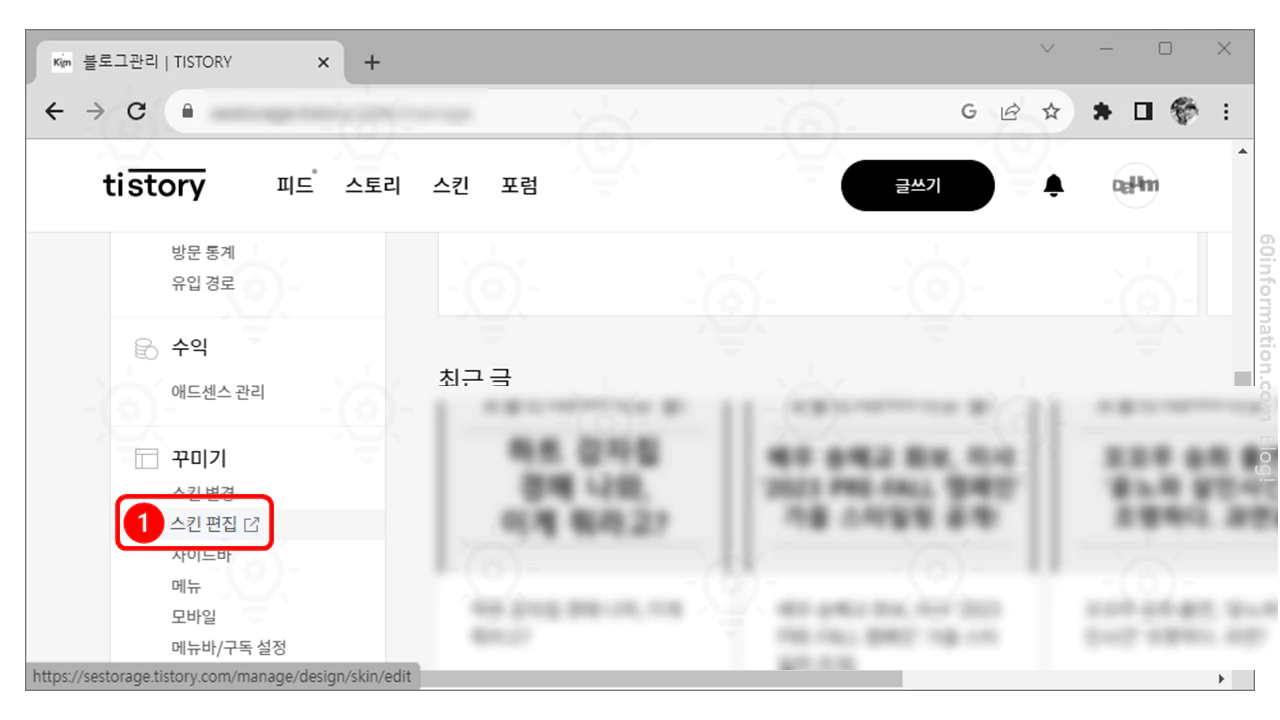 - 티스토리 블로그에 "스킨 편집" 선택.