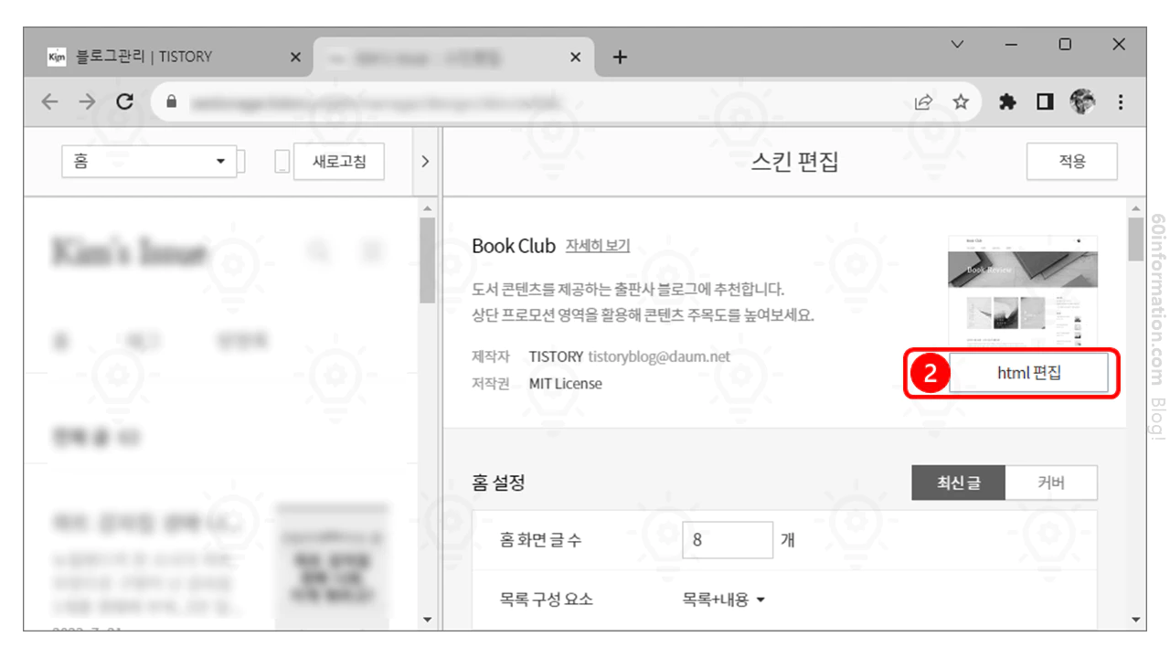 티스토리, "북클럽 스킨" 썸네일 크기 변경하기
